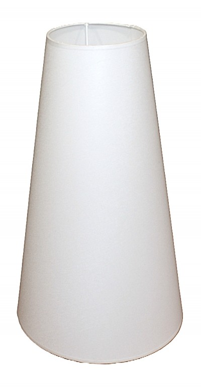 Ten abażur w kształcie stożka został wykonany z wysokiej jakości, oryginalnej bawełny. Wnętrze jest laminowane na biało, co sprawia, że światło rozprasza się równomiernie i pozostaje neutralne, bez niepożądanych odcieni. Brzeg wykończony został taśmą bawełnianą o szerokości 6 mm, dostępną w wielu kolorach.