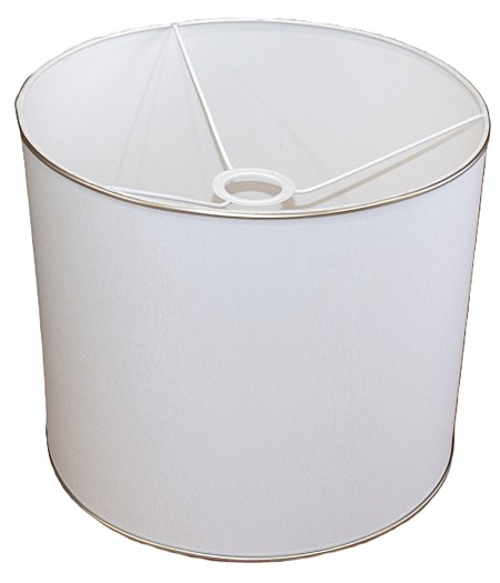 Elegancki abażur w kształcie walca, wykonany z wysokiej jakości bawełny, laminowany od wewnątrz na biało, który równomiernie rozprasza światło i tworzy przyjemną, nieoślepiającą atmosferę. Brzeg abażura wykończony jest bawełnianą taśmą o szerokości 6 mm w kolorze złotym lub srebrnym lub złotym, matowym profilem, oszerokości 3 mm, co pozwala dopasować produkt do stylu wnętrza.