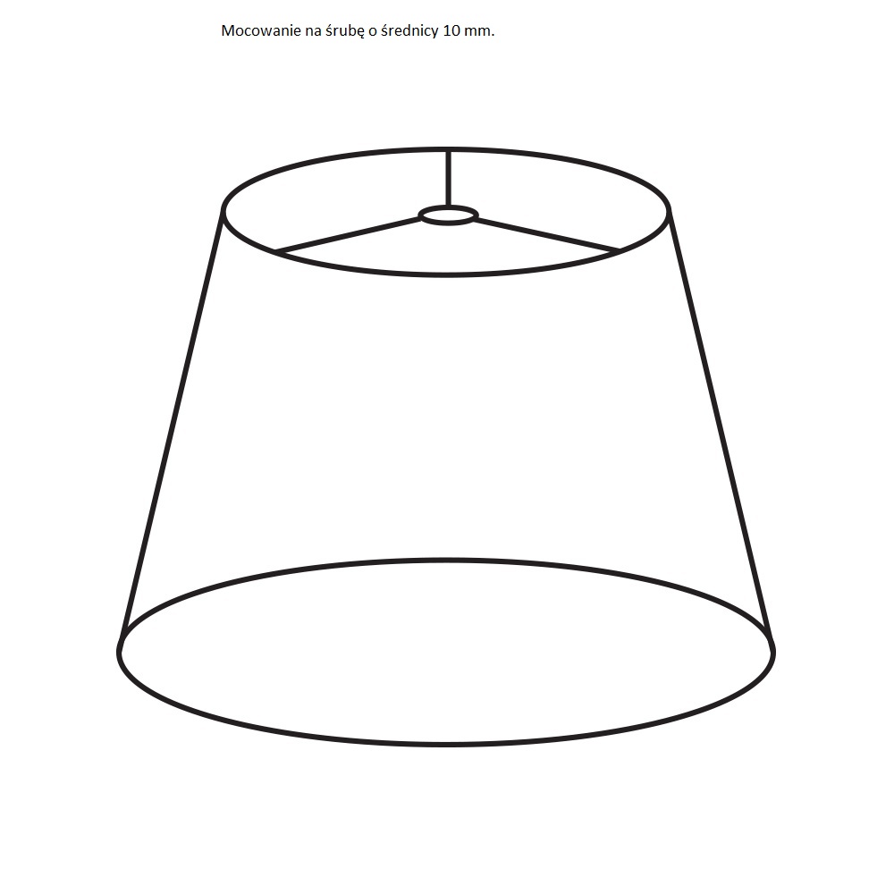 Abażur stożek, wykonany z oryginalnej bawełny, laminowany od środka na biało, brzeg wykończony taśmą bawełnianą o szerokości 6 mm. Doskonale nadaje się do oświetlania pomieszczeń podczas prac biurowych, tworząc jednocześnie przyjemny nastój. Jest mocny i lekki, do czyszczenia na sucho- łatwy w utrzymaniu czystości. Można go stosować do lamp stołowych, podłogowych zamiast kloszy szklanych oraz do lamp wiszącyh, sufitowych, pojedynczych.